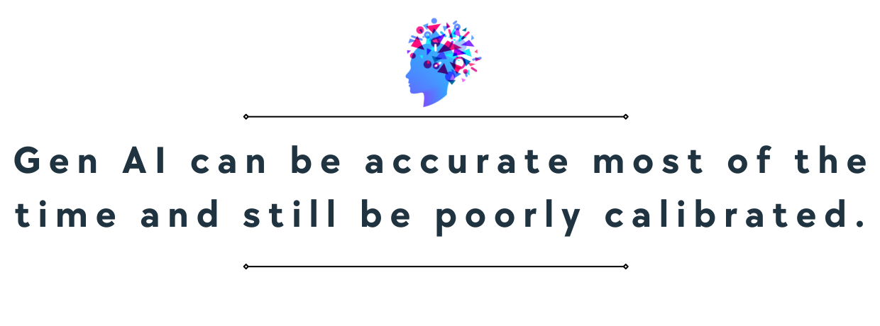 That’s what many AI systems do. They perform well overall, but they communicate confidence as if failure is unlikely, when in reality it’s still very much on the table. Gen AI can be accurate most of the time and still be poorly calibrated.